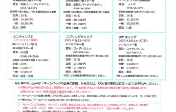 2025年度雪上行事の受付を開始いたしました! ホームページ「会員の部屋」よりお申し込みください。 会員以外の方も行事に参加いただくことができます。まずホームページの「お問い合わせ」からお問い合わせください。